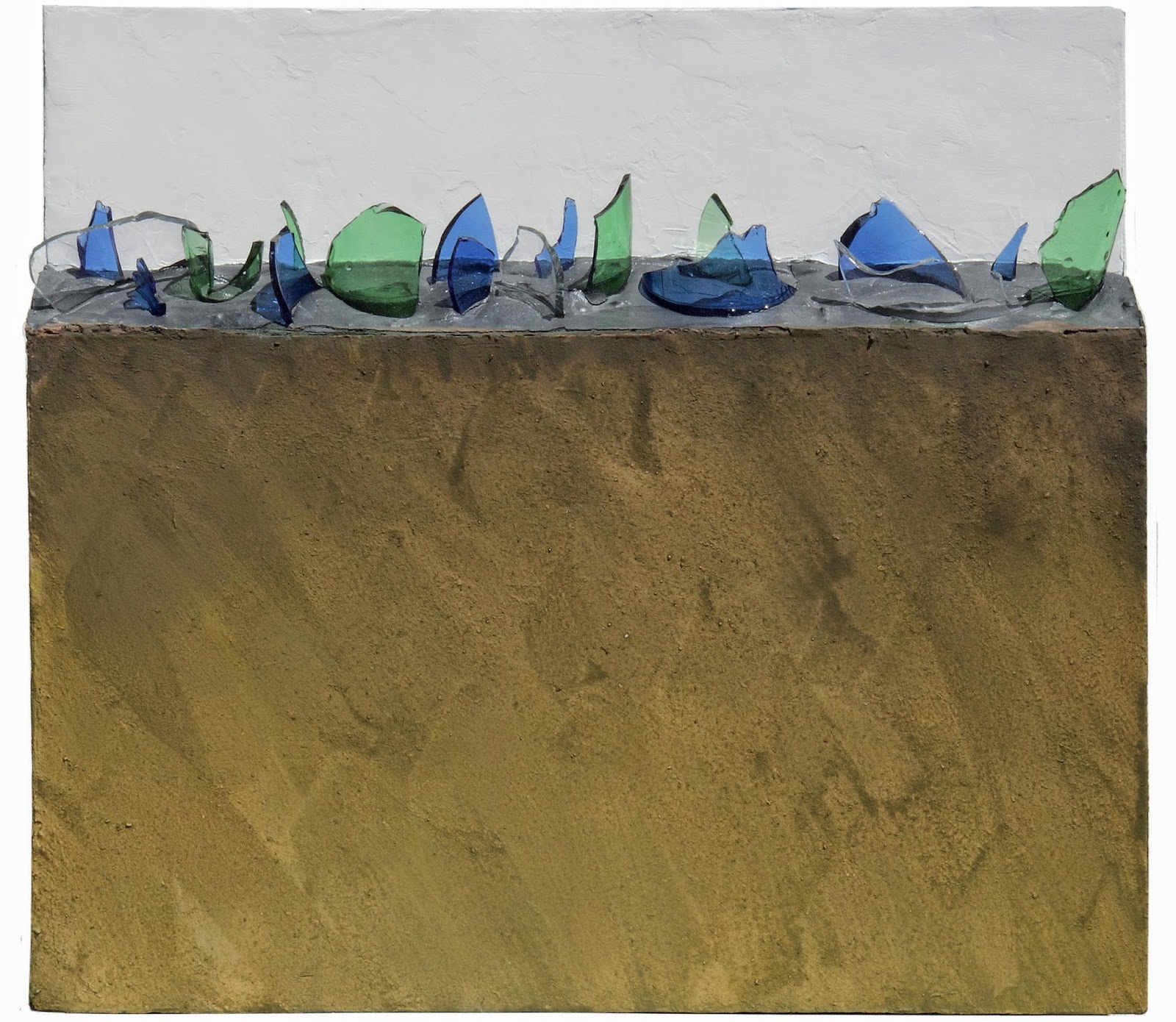 | HA-NOI.A, 2010, ακρυλικό τσιμέντο & χρωστικές σκόνες σε οντουλέ χαρτόνι, πλακάζ, γυαλί, 31 x 40 x 8,5 εκ. |